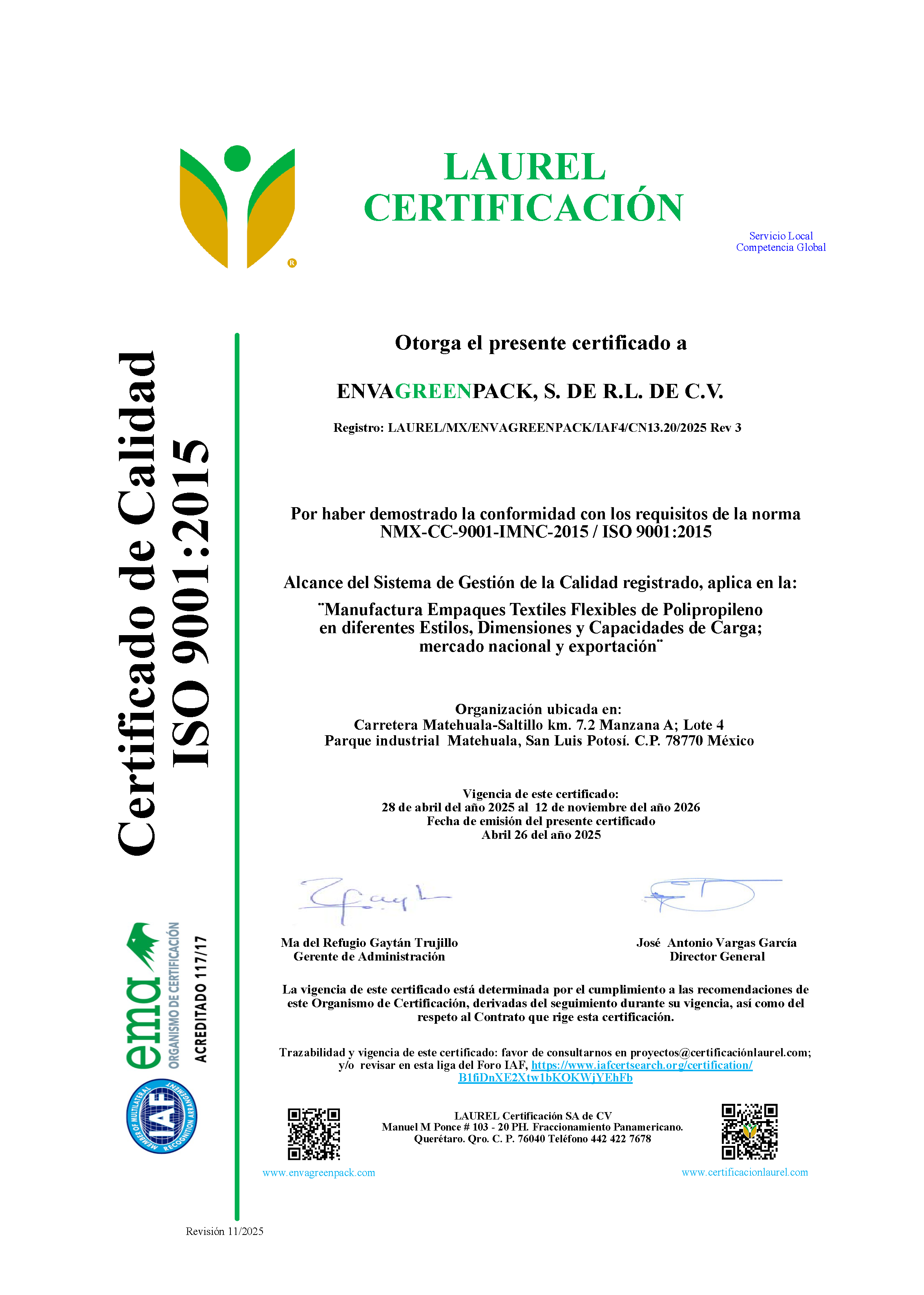 En Envagreenpack nos dedicamos a la fabricación de empaques flexibles para la protección y envasado de materia primas y productos para la industria en general, comprometidos con nuestros clientes y partes interesadas cumpliendo los requisitos aplicables.